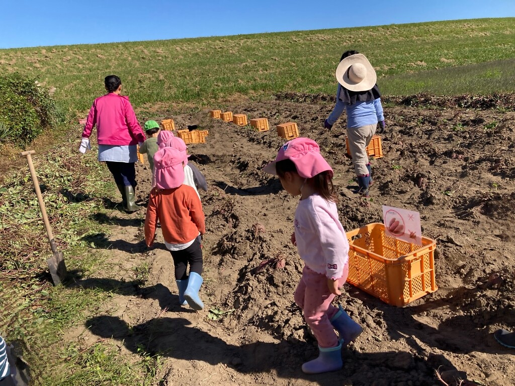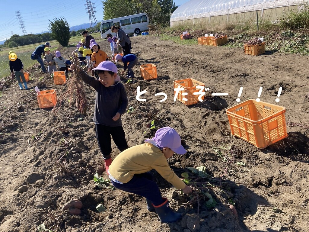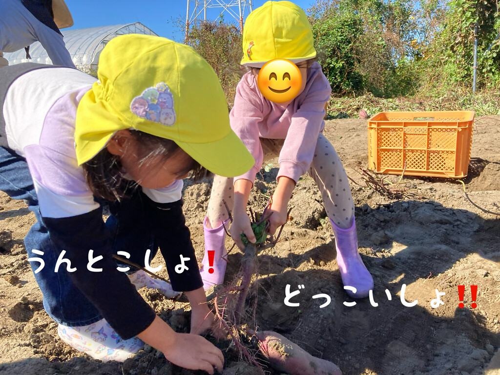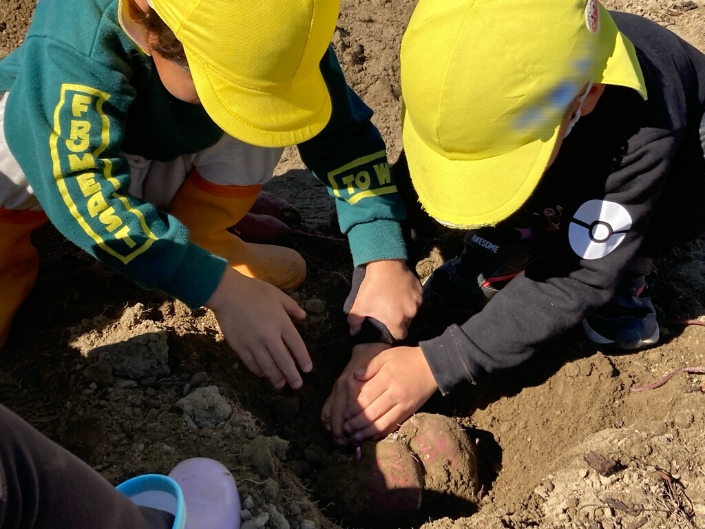 10月28日(火)、みんなで保育園の畑へさつまいも掘りに行ってきました!