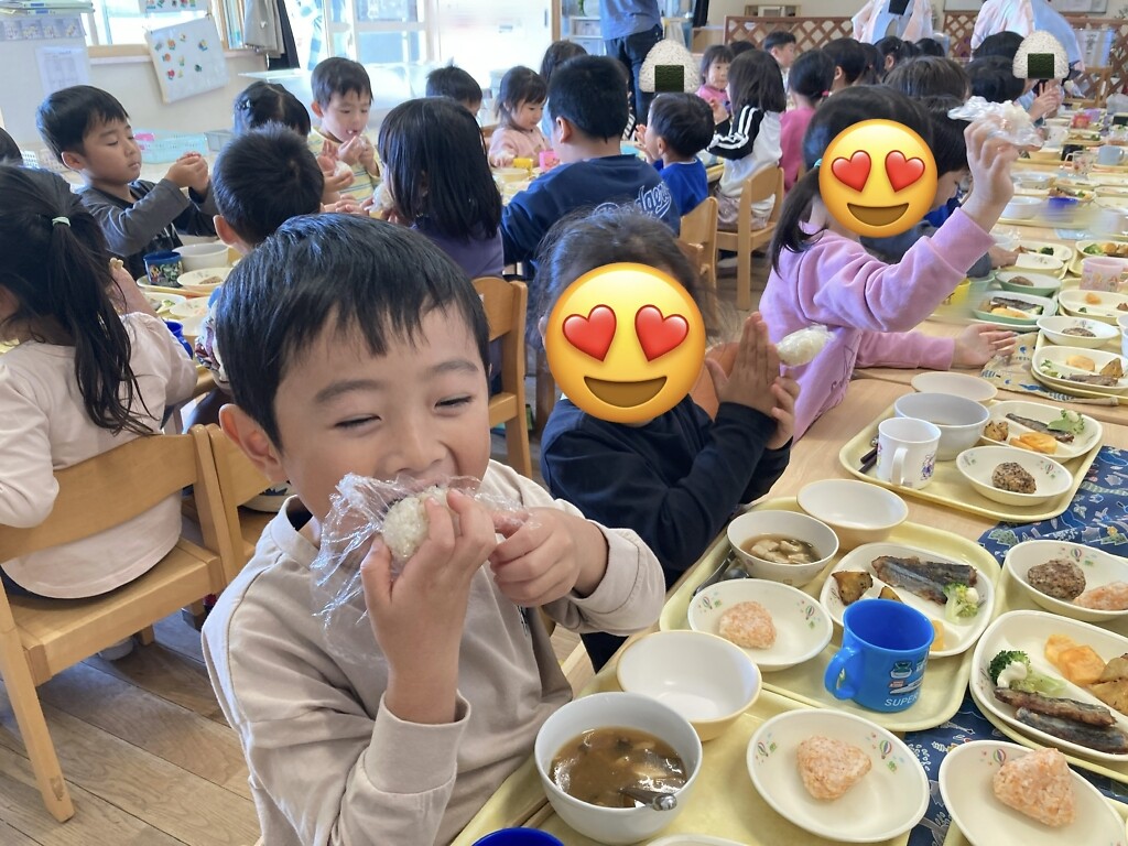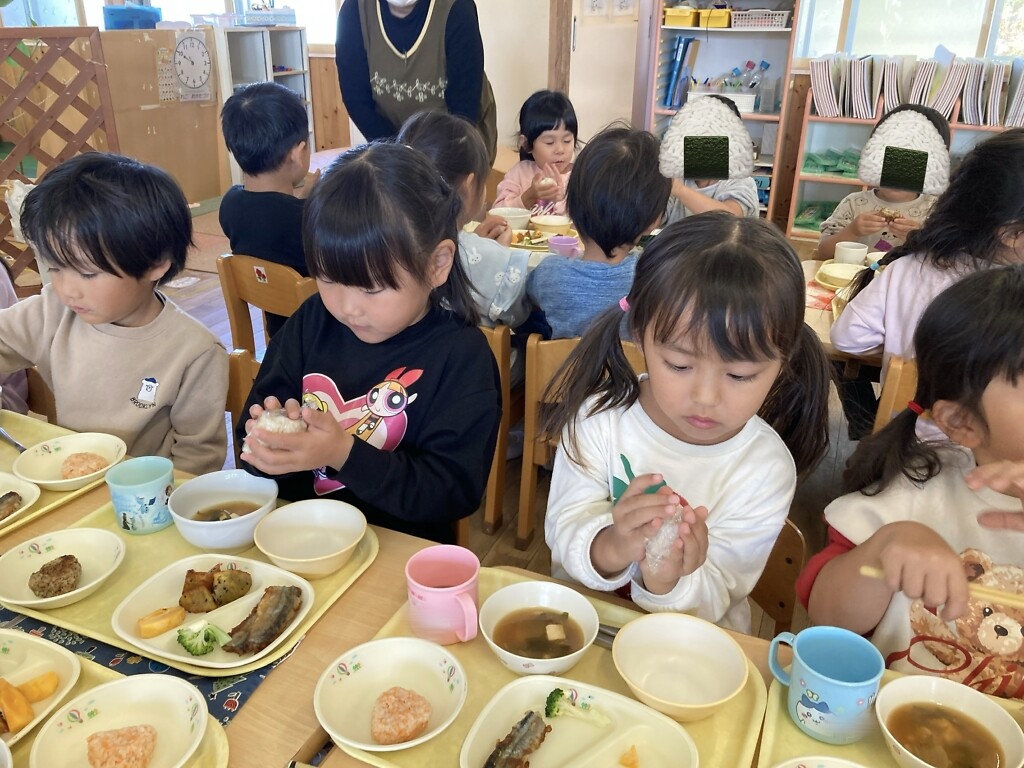 子どもたちは笑顔で、おにぎりのサイズを決めていました😄🍙