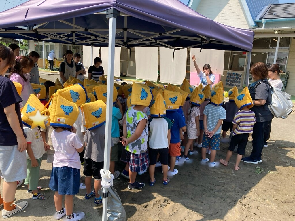 大きな地震はテレビなどでも見たことがある子も多く、みんな真剣に耳を傾けていました。