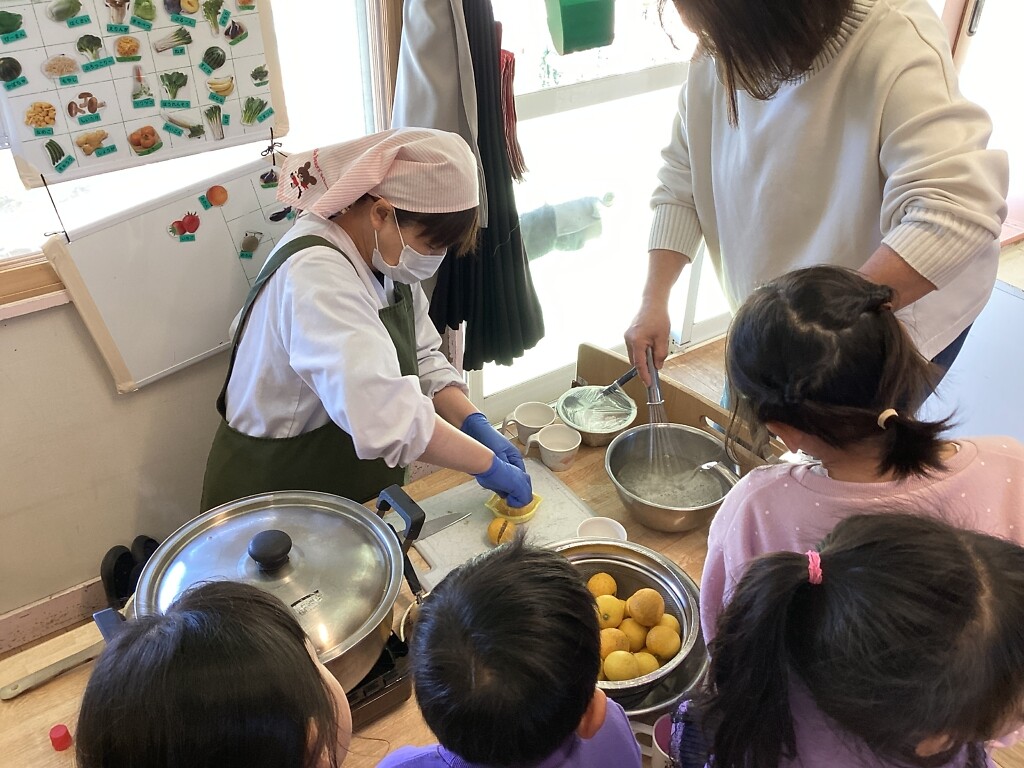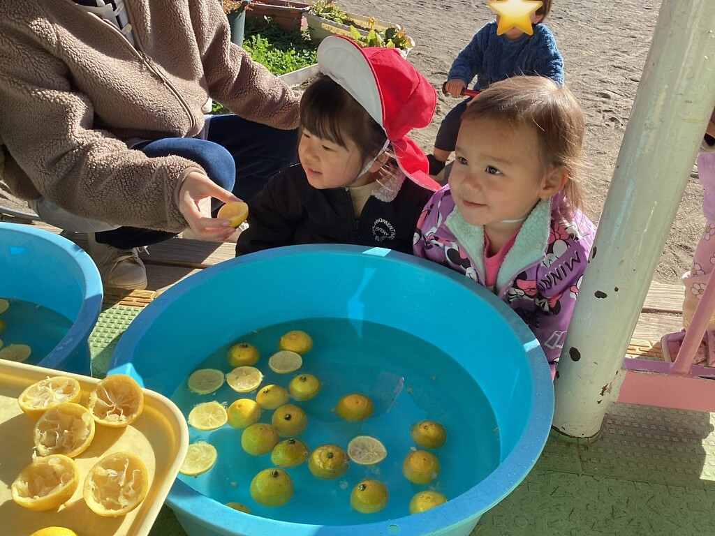 子どもたちに季節の行事を感じてもらおうと、ゆずとかぼちゃを使った活動を行いました。
